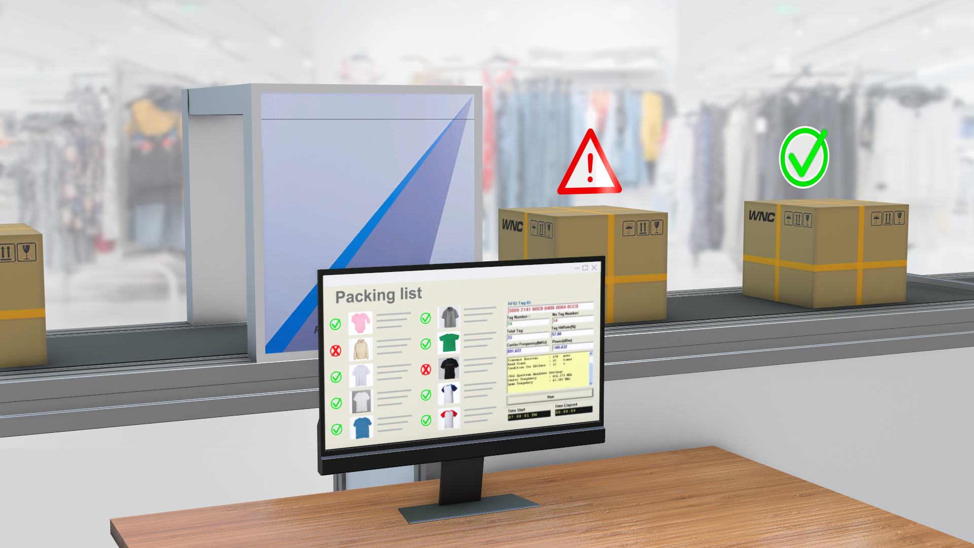 WNC's RFID Tunnel, coupled with a conveyor system, is able to automatically scan and read all RFID tags in product containers as they enter/exit warehouses. In tests involving 800 to 1,200 boxes of goods, the RFID Tunnel was able to simultaneously read tags in the boxes and compare their content against shipping lists, achieving 100% accuracy.